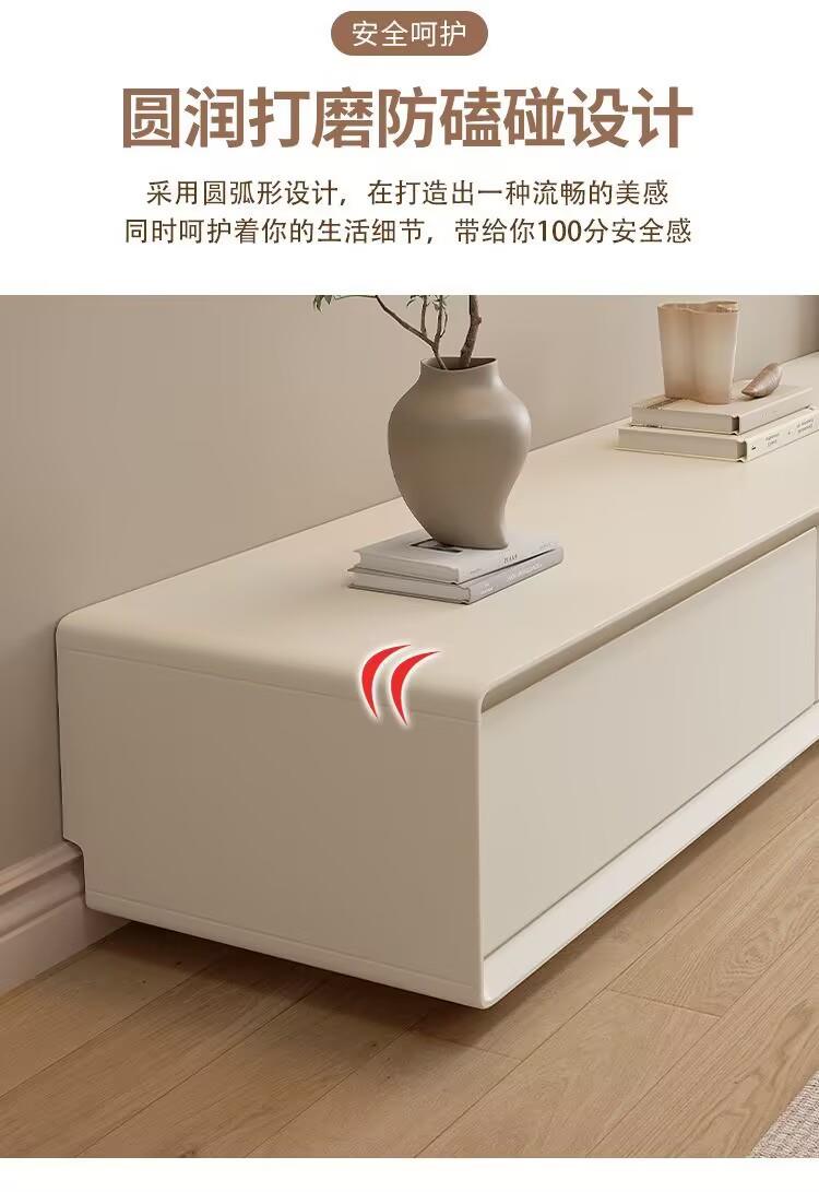 Rubberwood solid wood TV cabinet - Simple, modern, floor-standing, cream-colored, budget-friendly for small apartment
