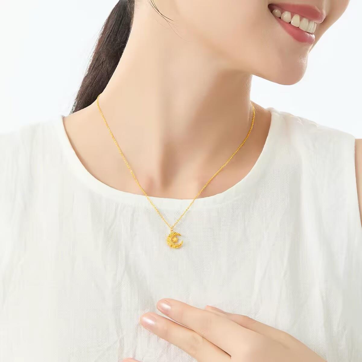 Official authentic Xingyue Dream Weaving gold necklace, Möbius ring pendant, gold-plated silver material, exquisite and versatile, suitable for gifting or personal wear.